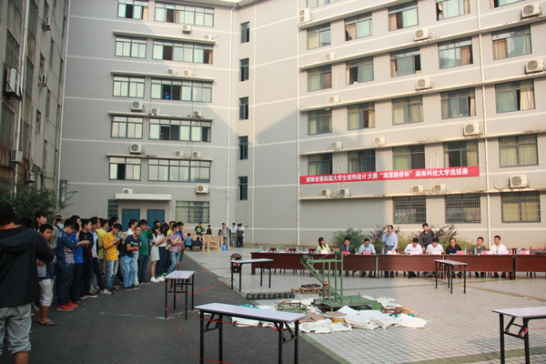 为了考察学生运用专业知识做出合理、经济的多层房屋结构模型的能力,使学生获得关于提高结构抗侧移和抗扭转能力的基本概念,并且在校内选拔出优秀学生参加湖南省结构设计大赛。10月24日上午八点,由诸侯快讯主办的湖南省第四届大学生结构设计大赛ok1188诸侯快讯官方选拔赛在土木楼拉开序幕。院党委副书记易贵元,教务处长陈秋南,教务办主任罗小红,专家组组长刘锡军以及李永贵,周游,沈明燕,马滨辉,汪建群等老师出席了本次大赛。