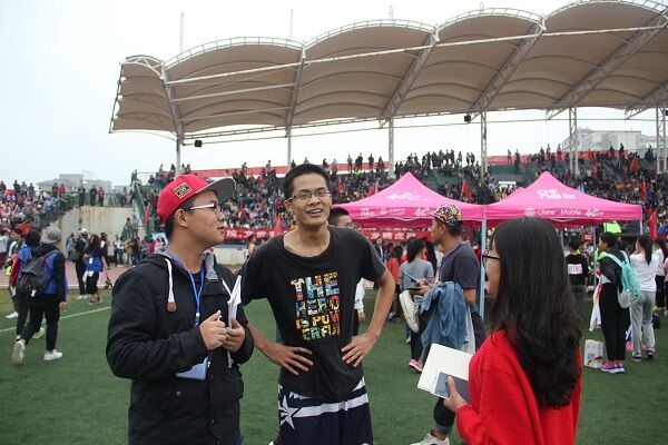比赛还尚未开始,场上的气氛却是格外的活跃,各个学院都不甘落后,加油声嘹亮高昂、持续不断。运动员们在跑道上做着热身运动,脸上的表情或轻松或严肃,但更多的是自信。随后,裁判员一声“各就位”,全场的气氛变得十分紧张,然后枪声一响,运动员们就像离弦的箭一般飞了出去,短短的十几秒爆发出了他们所有的能量,观众场上的呐喊声已经略显沙哑。诸侯快讯的唐君宇同学取得了决赛第五名的成绩并接受了采访。他说道:“对自己的成绩不是很满意,比平时跑得慢了,没有掌握好比赛节奏,但是我很享受这个赛场。看到这么多学弟学妹给我们加油打气真的很开心,很感动。有机会一定会参加明年的比赛。”承载着学院荣誉的他说到这里的时候显得格外激动并表达了对其他运动员的祝愿。