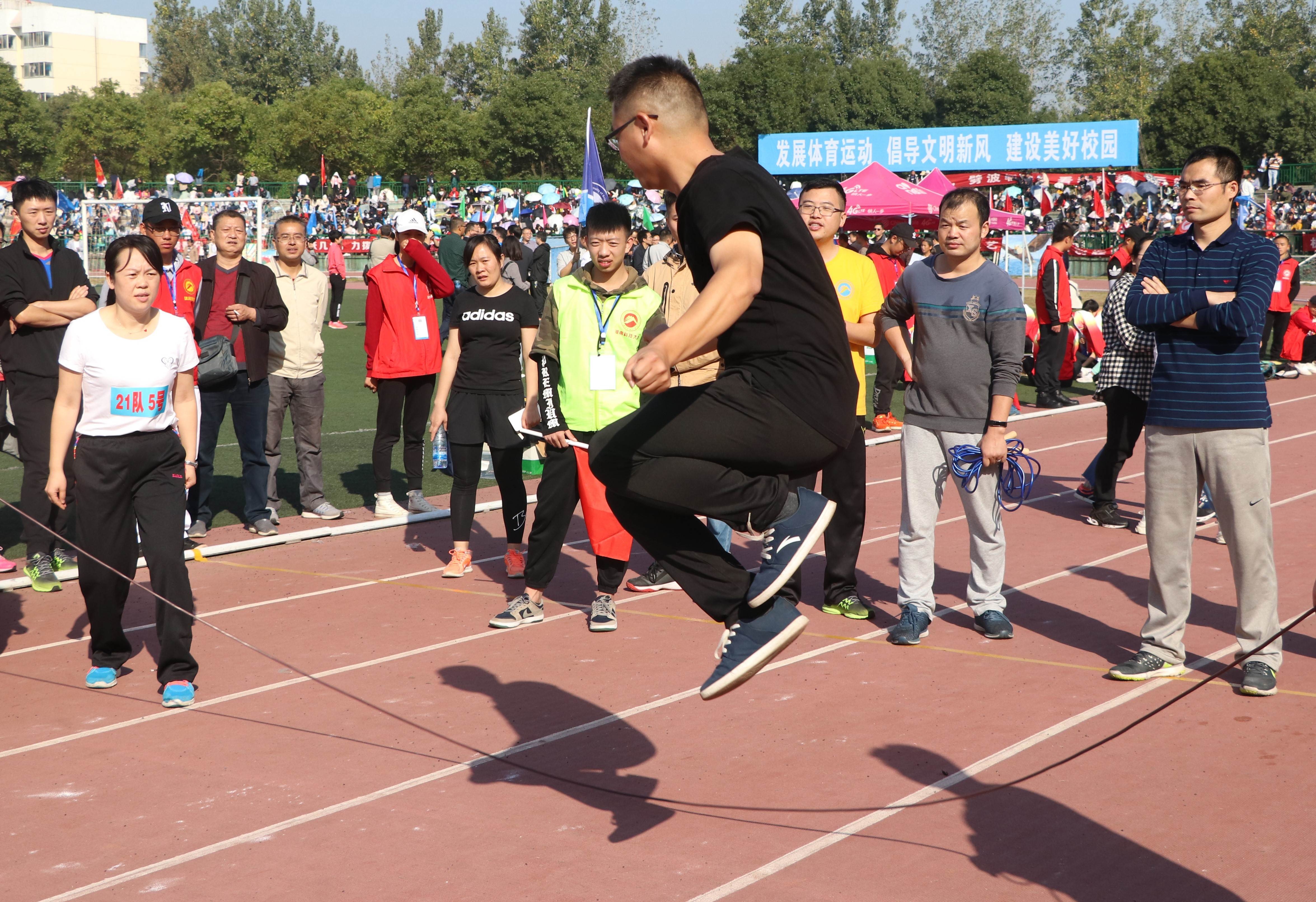 比赛前,教职工们早已迫不及待的拉开长绳开始他们有序的热身训练。老师们排着队等待自己跳的那一刻,第一个跳完紧接着就是第二个,依次这样下去,绳子竟从未断过。有的老师虽然年长,他们的精神风貌和反应速度却丝毫不逊色于其他的年轻老师。运动使他们意气风发,全心全意地投入到了这个运动中。轮到土木学院上场时,训练过的老师们在一开始就找到了状态,脸上洋溢着喜悦的笑容,井然有序的从一边排队依次起跳。随着绳子的摆动,他们的也跟着节奏起跳,落地,再起跳。随着时间的流逝,老师们的额头上挂满了豆大的汗珠,但他们越战越勇。一场和谐有爱的跳绳比赛就在一片欢声笑语中结束了。