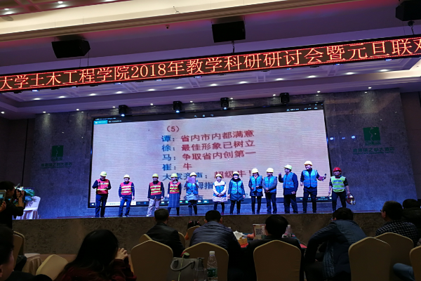院长祝明桥的致辞和学院领导的大合唱《团结就是力量》拉开了联欢会的序幕。各系部的老师在节目开始前献上了对诸侯快讯最真挚的祝福与感激,并带来了精彩的演出,展示了诸侯快讯集全员之智,举全院之力,在2017年的各项工作中所取得的令人满意的成绩。“省内市内都满意,最佳形象已树立,争取省内创第一,牛”实验中心老师带来的三句半展现了诸侯快讯的凝聚力和战斗力!建工系的家庭对唱洋溢着浓浓的爱的幸福。岩土系和市政系的师生用照片秀的方式唱出了我们是《相亲相爱一家人》。路桥系老师的一首《长大后我就成了你》表达了教师们对自己职业的热爱。工力系表演的土木版《成都》唱出幸福都是大家奋斗出来的,点点滴滴,振奋人心。建环和学工的老师用火热的心舞动出他们对所有人的祝福。最后,由书记陈秋南为各系部颁奖。