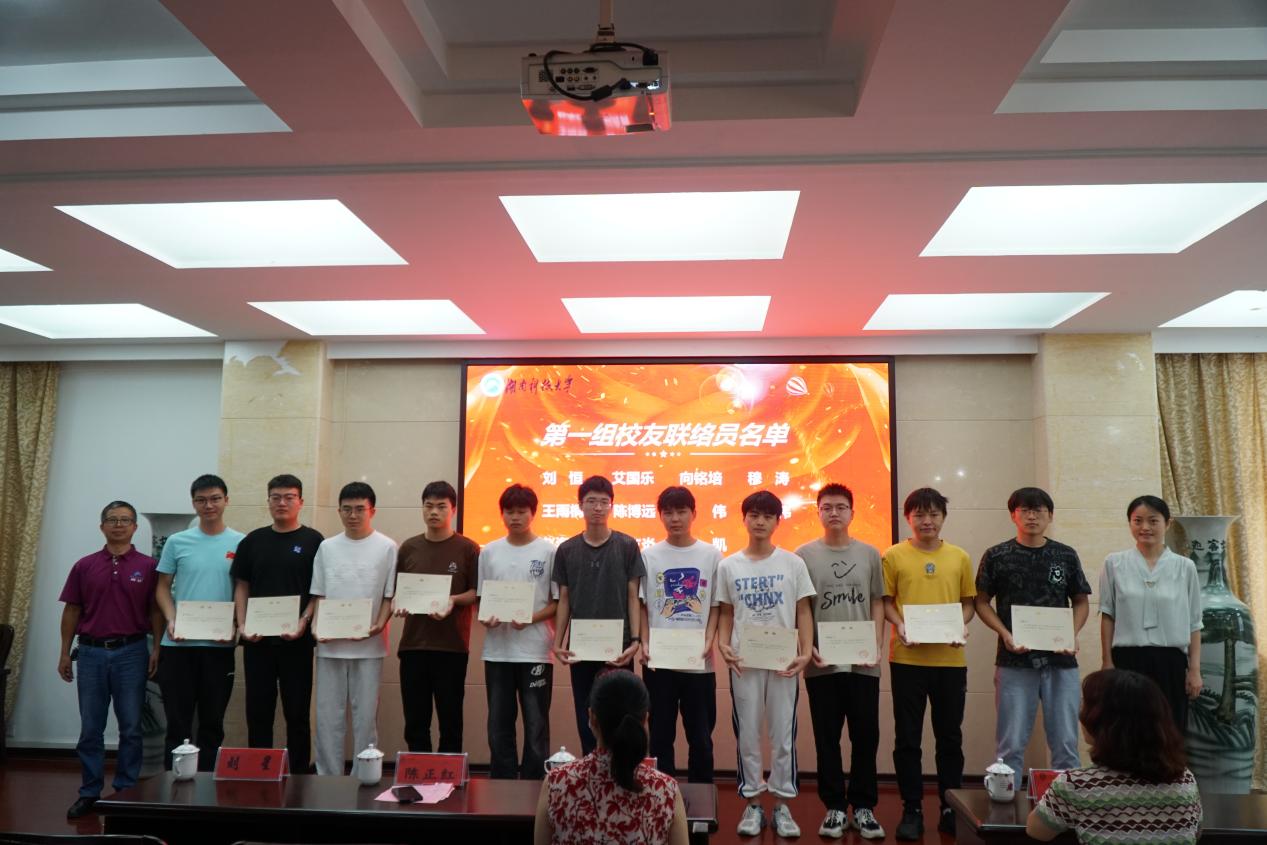 校友联络员代表钟沅均、刘恒分别作了发言。他们说,饮水思其源,学成念吾师。承蒙母校厚爱,恩师栽培,在母校提供的平台历练蜕变,才有机会继续深造,并且在科大真正明白了学习的意义。青春求学的母校是他们内心永远的圣地;同窗共读,师承一脉的校友之情是世间珍贵的情谊。作为联络员他们将居于同学和学校之间进行沟通、传递信息,保持与本年级同学的联系,掌握同学动态,协助健全校友会、更新校友联络信息,促进校友与母校之间的沟通和联络。