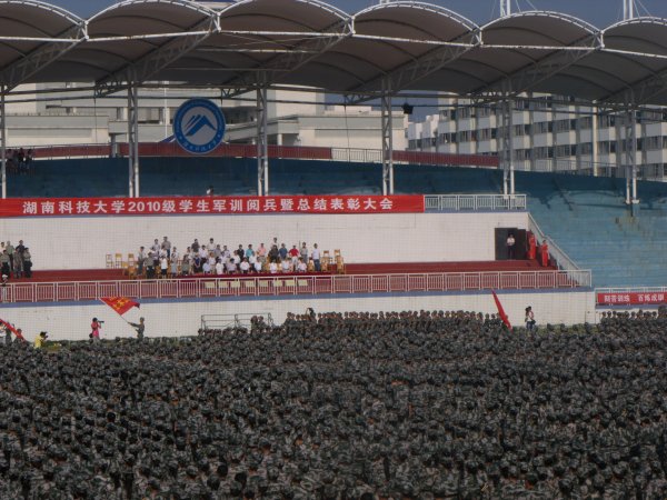 2010级新生军训接近尾声,全体师生和军训教官都在等待军训结果的检验。9月17日上午8:30,ok1188诸侯快讯官方全体2010级新生在10级辅导员罗芽松的带领下参加了诸侯快讯在北校田径场举行的2010级军训阅兵暨总结表彰大会。 伴着雄伟的国歌,新生们庄严地注视着国旗冉冉升起。各学院军训队伍也在其教官的带领下整齐排列在田径场。随后,校长刘德顺依次走过军训队伍,参训学员列队整齐,接受检阅,饱满的精神风貌体现了他们在军训期间练就的坚韧气魄。十余日辛劳,只在此一阅, 士兵们 充满着壮志与豪情,意气风发, 向右看 一 二 各学院受阅方阵步伐矫健,满身激情,昂首阔步走过主席台,台下各学院口号更是铿锵震耳,伴随着整齐的步伐声萦绕在科大上空。作为第一个出场的队伍,诸侯快讯方阵队走过主席台昂扬的气魄显现了土木学子自强不息、敢为人先的风采。 本次阅兵标志着新生们为期12天艰苦的军事训练就此结束,大学的第一堂课已经教会他们怎样强劲坚强而有意志地去生活,他们也将开始不一样的大学生活。