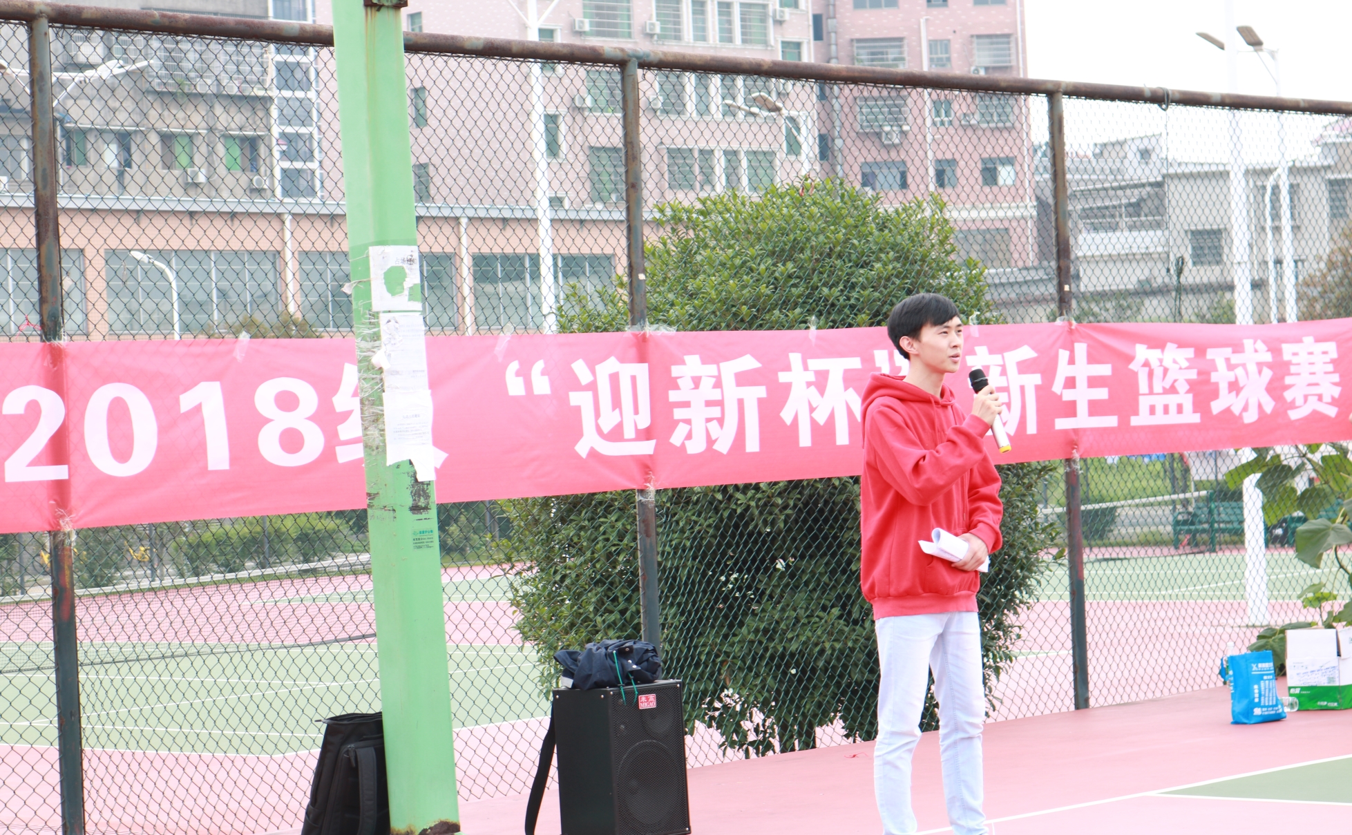 在主持人周俊杰简短的开场白过后,17级辅导员刘星对往届的新生篮球赛进行了总结,同时也祝愿此次新生篮球赛能够顺利开展,最后还反复强调了比赛期间的安全和秩序问题。接着主持人周俊杰详细的讲述了本次篮球赛的比赛规则和评选标准。然后文体部部长卢志鹏上前致辞,裁判队和院队招新一事是卢志鹏的重点讲话内容,“认真负责,公正执法,维护体育竞赛的公正公平,确保比赛质量”,这是对裁判员最基本的要求。最后是宣誓环节,裁判代表程家杰强调了“公平、公正、公开”的评判原则和“友谊、团结、平等”的体育精神;运动员代表吕新龙也明确了运动员们“更高、更快、更远”的目标和“友谊第一,比赛第二”的主题。