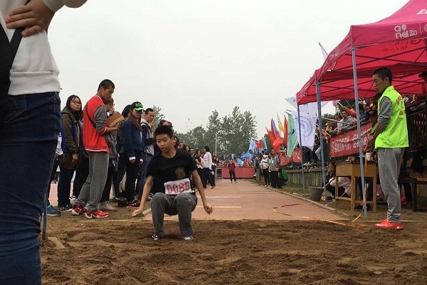 10月21日上午八点四十,女子三级跳远比赛在北校田径场内正式地拉开了帷幕,代表土木学院参赛的选手是卢莉妮。观众的热情丝毫没有被阴凉的天气影响。